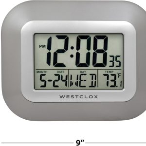 WallarGe Atomic Clock with Indoor Temperature and Humidity, 12.5 Inch Self-Setting Digital Wall Clock or Desk Clock, Battery Operated Digital Clock Large Display for Seniors, Auto DST